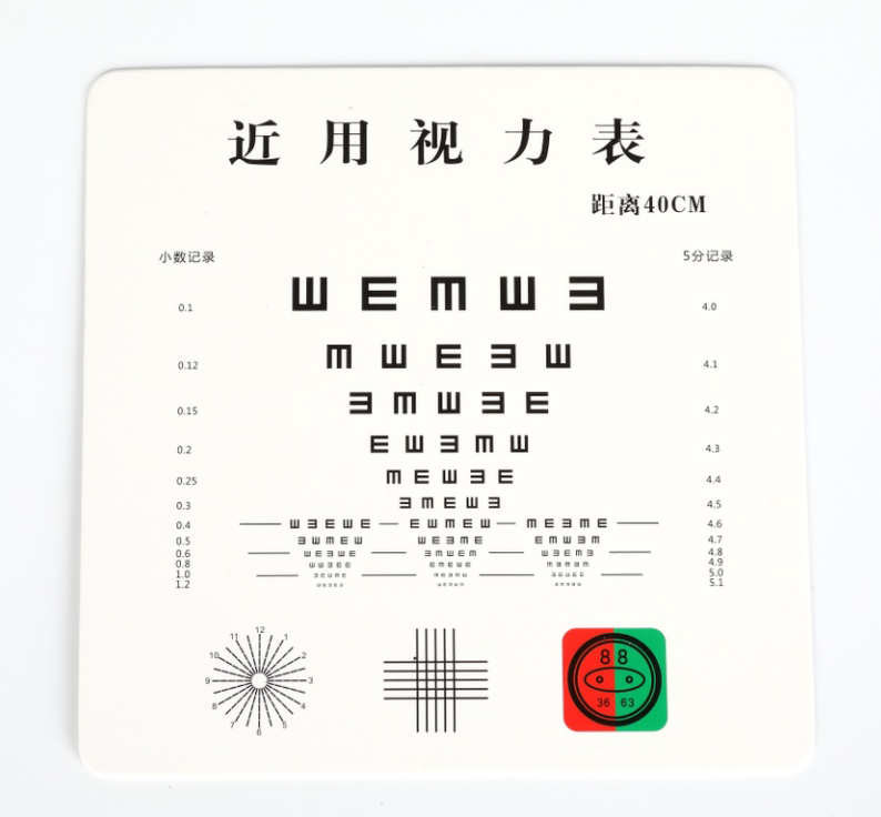 2、當在距離眼睛前7~8cm的位置仍能看清近視標卡的視標時,應更換較小的視標。