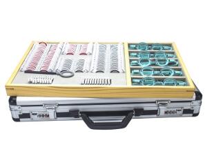 第一種方法是在我們的驗光鏡片箱中挑選出一片光學中心和幾何中心幾乎完全重合的球鏡片,然后將鏡片的一側緊靠可調檔板隨之一起移動,直到鏡片的棱鏡度為0,將儀器的可調檔板固定,你需要耐心的調試,直到鏡片幾個方向的棱鏡度都為0,這時可調檔板的位置就確定了。